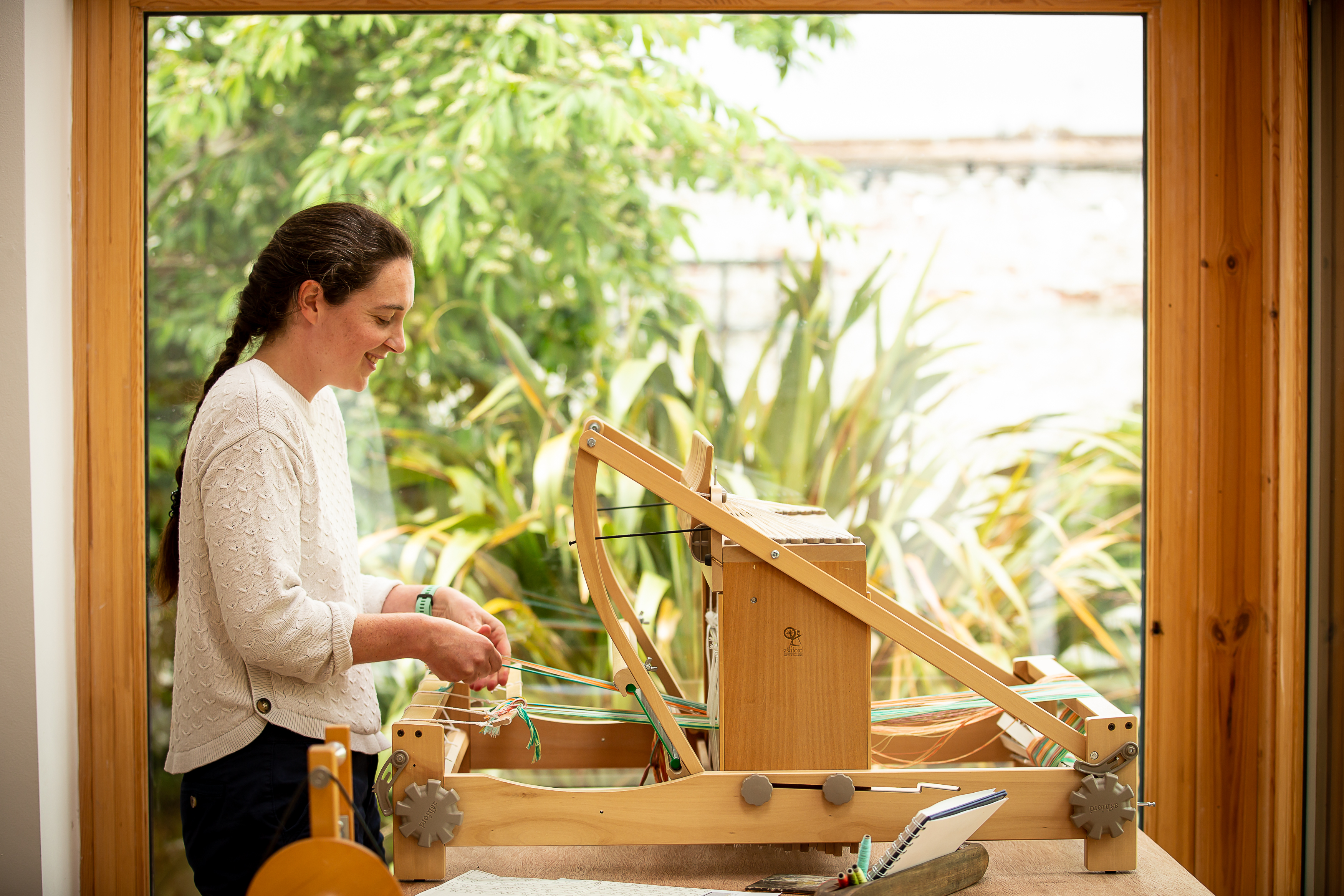 Through my childhood, I remember playing in and around my father’s weaving space, whether trampling on the treddles of his tapestry loom or idly turning his spinning wheel. However, my personal interest in weaving didn’t manifest until after I started carrying my own children in woven wrap slings. I loved connecting with my little ones in this way, but also became fascinated by the fabric we were wearing, how it was created and designed. This led me to weaving my own and ignited my love with the craft.