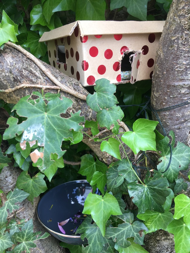 But no greater pleasure was taken than from our winged garden visitors. I am always happy to see our resident robin dotting about; I am aware of the couple of fat pigeons that occasionally land, so rotunded that it is always a surprise that they are able to take wing with such agility; there are various finches and tits that deem our garden a safe spot for a brief visit and I knew our bay tree housed a couple of blackbirds. Never before though was I able to observe and follow with such keenness the first few days when their new fledglings left the nest and spent a few days nestled within our garden before they were ready to take flight. The cat was kept indoors, save his killer instincts took hold and we enjoyed trying to spot the brown fluffy baby blackbirds in amongst the foliage. A real treat!